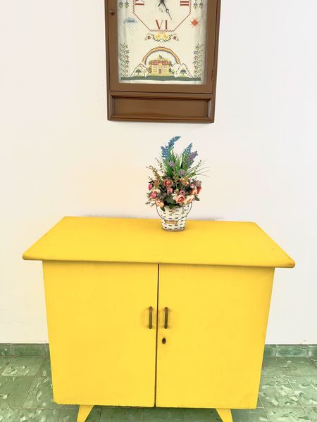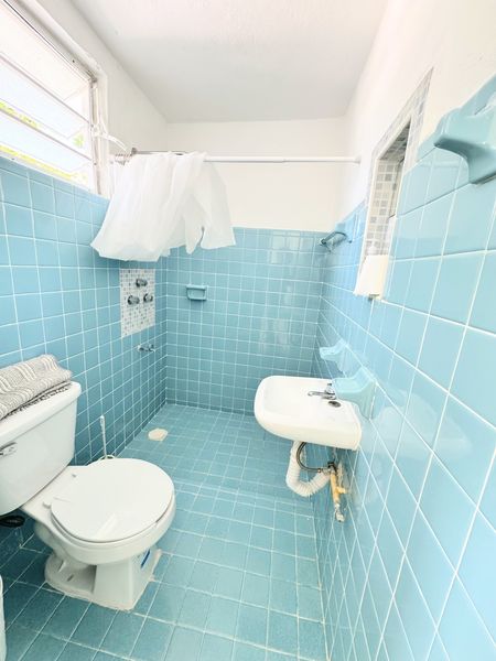 La casa también cuenta con dos baños únicos: uno con azulejos azules brillantes y otro con un tono verde más suave y mosaicos. En el exterior, puedes disfrutar de dos patios privados con mesas y sillas, ideales para relajarte con un café por la mañana.