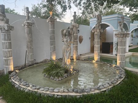 Fuente decorada con esculturas tipo mármol