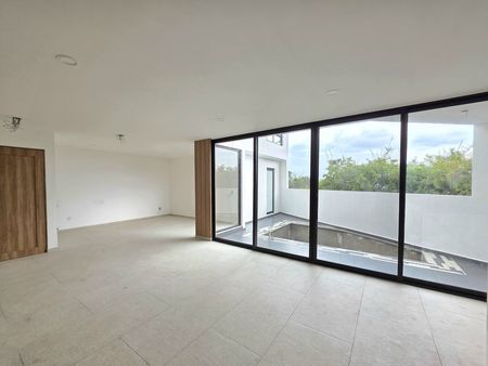 En planta baja: cochera para dos autos, acceso directo a la zona de alberca, sala, comedor y cocina en concepto abierto, área de lavado y despensa.