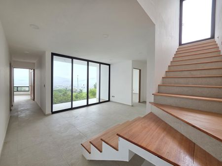 En segundo nivel: recámara principal con vestidor y baño completo, dos recámaras secundarias con baño compartido. Todas las recámaras cuentan con buena entrada de luz natural y vistas al valle.