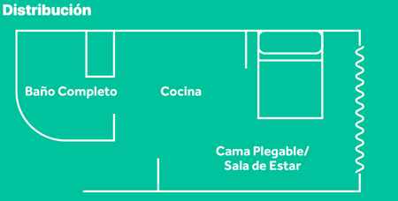 Sin amueblar. Cuenta con 1 cama oculta para optimización del espacio, ante-comedor, cocina totalmente equipada y baño independiente.