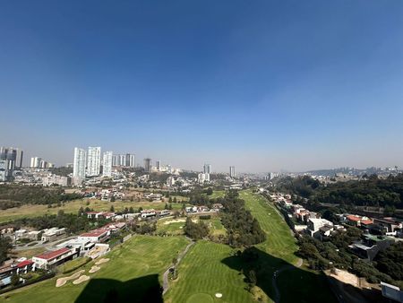 Departamento en exclusivo desarrollo THE RESIDENCE BOSQUE REAL con acabados de lujo, ventanales amplios, terraza con una excelente vista panorámica.