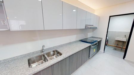 Entre sus amenidades destacadas, disfruta de una cocina integral moderna, un balcón privado que permite apreciar panoramas urbanos, roof garden ideal para eventos al aire libre, un cuarto de lavandería funcional. La propiedad está equipada con elevador, cuarto de estudio, cuarto de TV, y un sistema de seguridad integral con vigilante, garantizando la tranquilidad de sus ocupantes.
