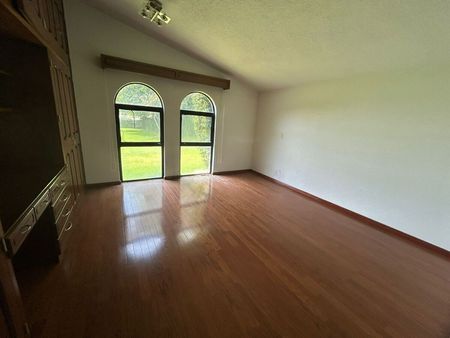 Recibidor con patio central a doble altura con hermoso árbol, cocina integral con barra desayunador con mucho espacio para guardado, cuarto de servicio con baño completo, cuarto de lavado y área de planchado y tendido. Acceso lateral para el personal de servicio. Área de antecomedor, área para comedor principal, sala principal en desnivel con jardinera y ventanal, espacio para estudio/oficina o área de TV, medio baño de visitas, tres recámaras con closet y baño completo cada una, bodega. Amplia terraza hacia el grande y hermoso jardín con árboles y flores laterales. Hermosa vista y acceso al lago.