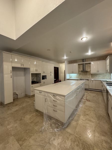 Encimeras de trabajo de Corian, De importante fabricante, Equipada, isla grande tipo barra, con parrilla, torre de hornos, lavavajillas, Línea blanca GE Profile. Despensa tipo walk in, Alacena, Servidor. Amplio antecomedor con 2 ventanales con vista y salida a terraza y jardín.