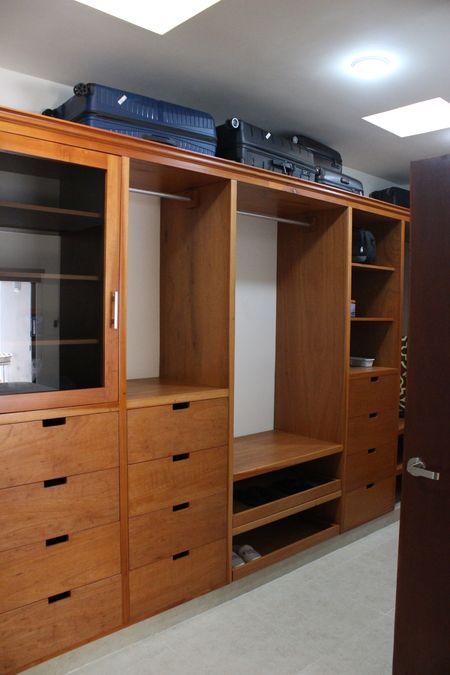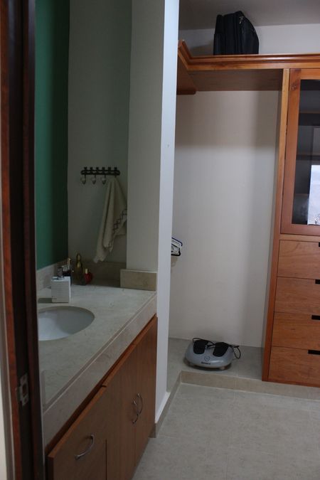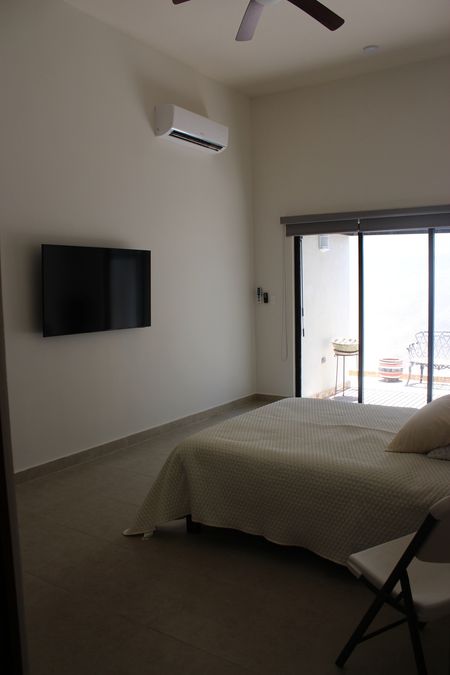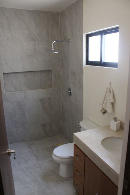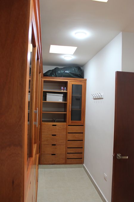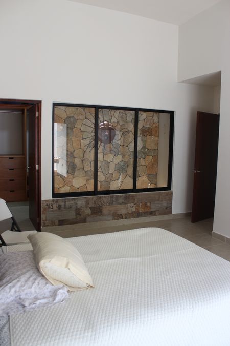 Recámara principal con clóset vestidor, baño completo y cristal templado