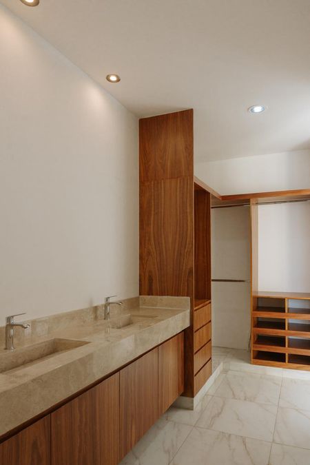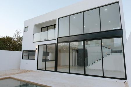 Casa lista para estrenar en privada Támora. En planta baja area de lavado, medio baño, área de cocina, sala y comedor con doble altura, terraza, piscina, cochera techada. Planta alta Habitación principal con walking closet, baño completo con lavabo doble y balcón, 2 habitaciones secundarias con balcon y baño completo. ´Carpintería de closets, en cocina y baños. Canceles de cristal templado en baños.