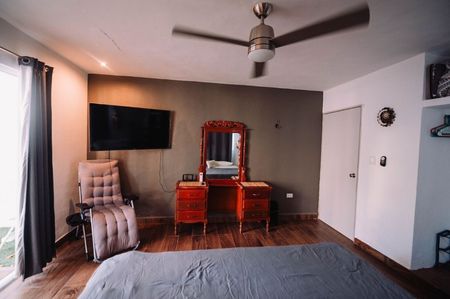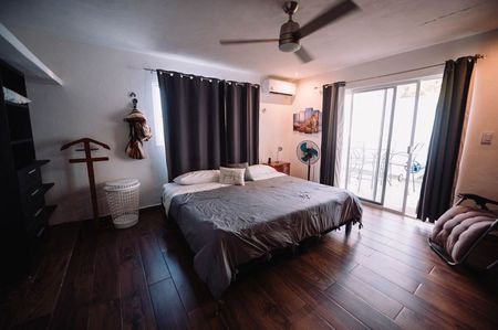 - Habitación principal con aire acondicionado, cama king size, TV, tocador)