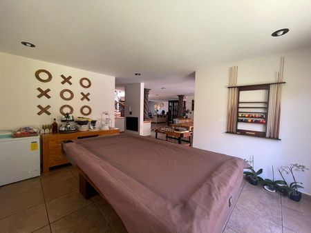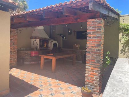 En el interior, cuatro habitaciones se complementan con tres baños completos y dos medios baños, configurando espacios privados amplios y cómodos para toda la familia. La zona exterior se enriquece con un área de asador equipada con un auténtico horno de piedra para pizzas, ideal para reuniones al aire libre.