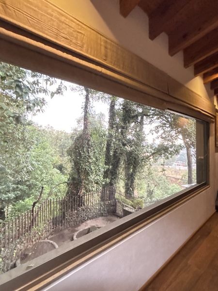Habitación principal con antecámara, un gran espacio incluso para tener una salita o una oficina privada, techo de viga de madera, de altura y media, espectaculares ventanales de pared a pared con vista al Bosque de los Dínamos