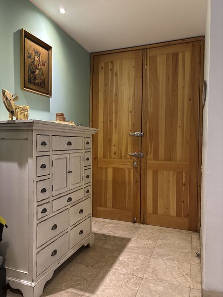 Abres la puerta principal está el recibidor, un medio baño para visitas y espacio actualmente acondicionado como gimnasio.