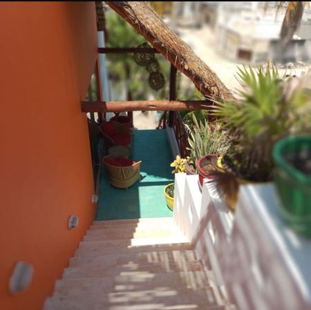 Acceso al Roof Top desde la planta baja, cuenta el área con palapa y una sala, cada terraza tiene luz y hamaqueros.