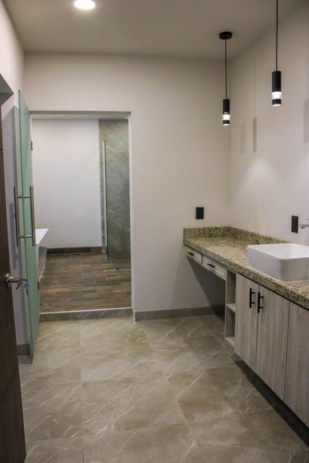 GRANITO. CANCELERÍA Y VENTANEARÍA RECIÉN INSTALADA, PISOS NUEVOS DE PORCELANATO, MUEBLES DE LAVABOS CON OVALINES Y CUBIERTA DE GRANITO, GRIFERÍA Y SANITARIOS NUEVOS, VIDRIO TEMPLADO EN BAÑOS, CISTERNA CON BOMBA HIDRONEUMÁTICA, MINA DE GAS DE 300LTS, ILUMINACIÓN EN TODA LA CASA CON LUZ LED Y CALENTÓN DE PASO PARA 4 SERVICIOS