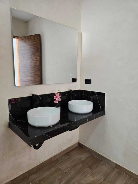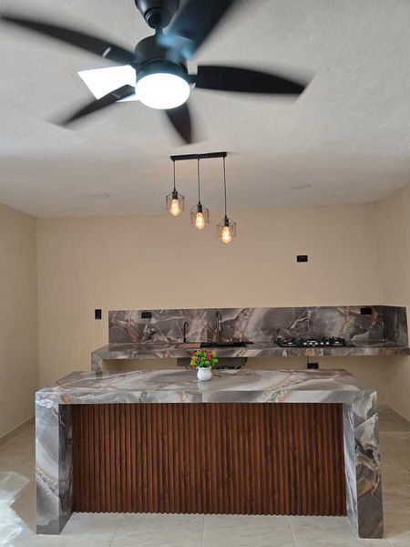 - COCINA CON BARRA DESAYUNADORA , TARJA DE PRIMERA Y PARRILA DE GAS EMPOTRADA.