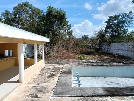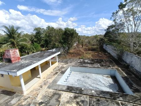 Hermosa quinta ubicada en el corazón de el municipio de selle Yucatán la casa cuenta con dos habitaciones un baño amplios espacios de sala comedor y cocina una piscina increíble bar con terraza baños de visitas y área para eventos