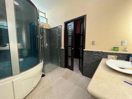 En la primera planta se encuentra la sala comedor, cocina muy amplia, estudio, jardín intermedio, área de lavado, medio baño, cochera para 3 autos, terraza con jardín lateral y alberca