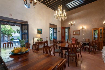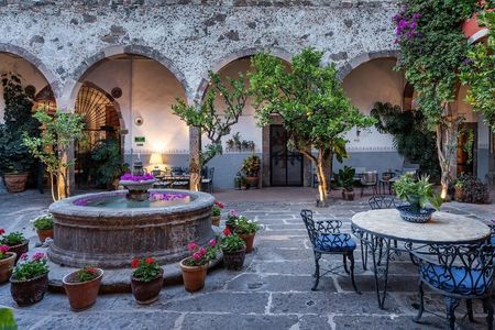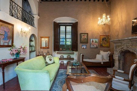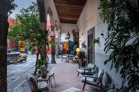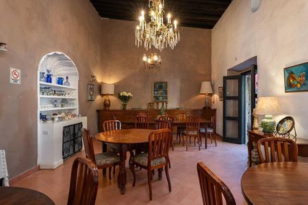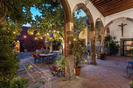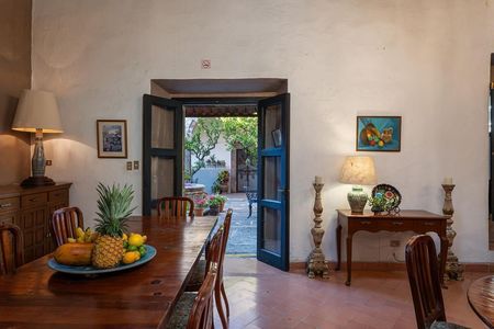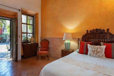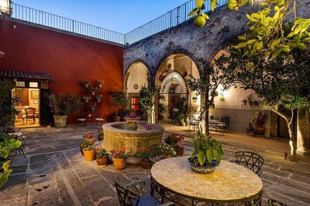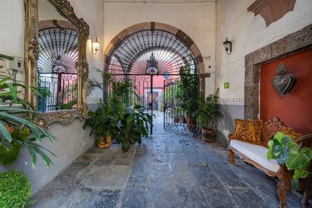 Nestled amidst the cobblestone streets of the UNESCO world heritage city of San Miguel de Allende, a truly extraordinary opportunity awaits - the acquisition of an 18th century historical gem which beckons those with a penchant for timeless elegance and rich heritage. This rare colonial property location was part of the original urban design of this historical city and is mere steps away from the landmark parroquia with its tree lined jardin, a popular gathering place for locals and tourists alike. As you pass through the imposing hand-hewn wooden doors, you are instantly transported into a realm of enchantment, a sanctuary of serenity hidden just moments from the vibrant heart of San Miguel. A vast interior courtyard, paved with the original flagstones, unfurls before your eyes, adorned with an ancient central fountain whose waters cascade with gentle grace. Towering lemon trees and meticulously nurtured flora paint a picturesque tableau, all framed by the embrace of a graceful colonnade supporting stone arches. By nightfall, subtle up lights unveil the intricate architectural wonders, casting a spell of romantic Spanish allure over the surroundings. This historic residence has been owned by a local family since 1958, and they've lovingly preserved its essence and originality as a charming boutique hotel. Boasting eleven ensuite bedrooms, with seven of them spilling directly onto the courtyard, the layout exudes classic symmetry, every wide door crowned by time-worn lintels. Here, the central courtyard stands as the social heart, echoing the time-honored traditions of daily life and human connection. Overlooking this splendid courtyard, an opulent dining room beckons just steps from a traditional colonial style kitchen, while an intimate salon exudes an understated elegance from a bygone era. The interior, an eloquent testament to its colonial origins, holds the promise of seamless modern conversion, ensuring a graceful blend of past and present. Through an ancient stone corridor, one finds four additional suites set amongst a small garden laced with hundred-year-old vines surrounding a tiled wall fountain. A whisper from history, this is a unique and rare opportunity to own a piece of San Miguel de Allende's narrative. It's an invitation to breathe life into a timeless masterpiece, to be the guardian of its storied past, and to craft a future steeped in the enchantment of this UNESCO treasure. This iconic property is perfect to continue the tradition of a boutique hotel or to transition back into a private residence, concept house or private club. In an unrivaled prime corner location, it currently houses a separate retail space that could be incorporated back into the original building. Please note property is being sold furnished with the exception of the unique cushions and textiles, courtesy of Roma Quince by Deborah Salmon Villarreal, Mexico City and San Miguel de Allende.