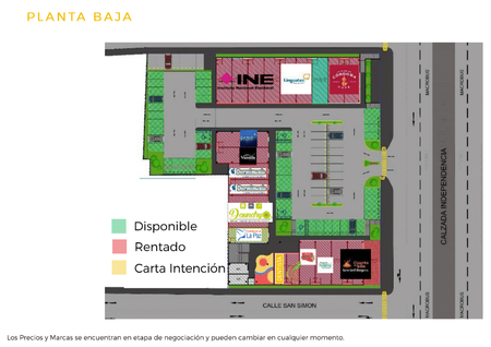• Precios de mantenimiento aproximados del $36.75 pesos x m2 más el valor de la renta.