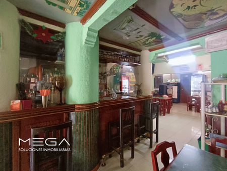 Su distribución funcional incluye una cocina espaciosa, área de bodega, una barra lista para atender clientes, y tres baños, todo en una cómoda planta baja.