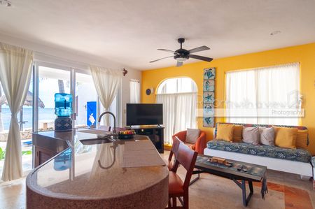 Brillante y acogedor, este departamento de 2 recámaras y 2 baños en planta baja está a solo unos pasos de la arena y a minutos de las aguas cristalinas de la Laguna Yal-Ku. Disfrute de las vistas al mar desde la cocina y la sala, o salga al patio cubierto. A solo unos pasos encontrará una reluciente alberca frente al mar con suficientes camastros para tomar el sol y frescas palapas para descansar a la sombra, lo que lo convierte en un hogar vacacional ideal o en una propiedad con excelente potencial de renta.