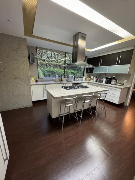 Sala con grandes ventanales y comedor amplio, antecomedor, cocina, cuarto de servicio y de lavado. Oficina. Family, 3 recámaras amplias, con vestidor, 3.5 baños. 3 estacionamientos.