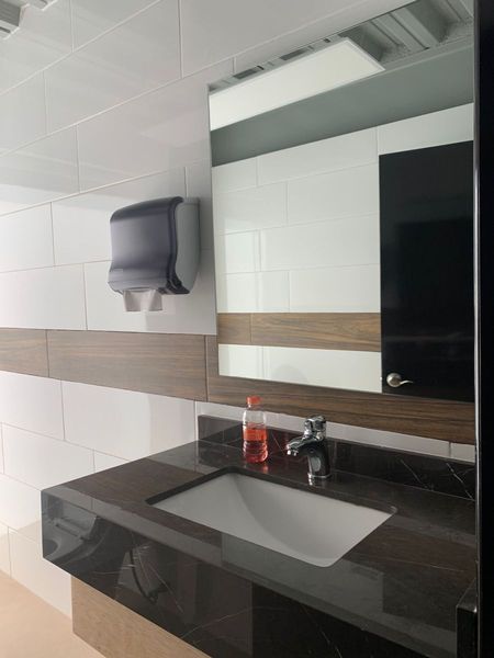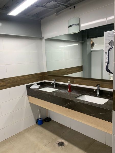 Tiene caseta de vigilancia, papelería, recepción, sala de juntas, un privado, una sala de juntas, área de trabajo múltiple, 4 baños para mujer e y 4 baños para hombres con 3 mingitorios, cocina, comedor con área de mesas.