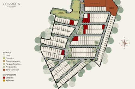 El master plan de Comarca incluye 224 lotes residenciales con accesos controlados y una Casa Club de más de 10,000.00 m². El desarrollo está rodeado de senderos, ciclovías y parques temáticos que promueven la interacción entre vecinos y la vida en comunidad.