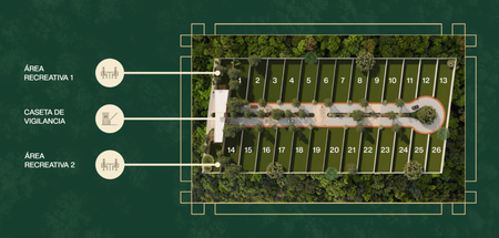Sólo 26 lotes residenciales, todos con orientación ideal Norte-Sur, dentro de una privada boutique con: Caseta de vigilancia