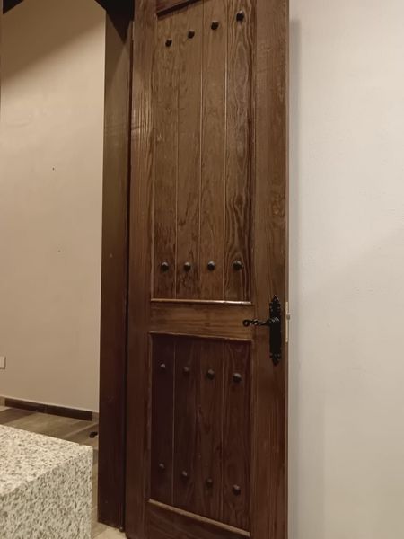 puertas de madera maciza cardeadas s , a mano , acabados en piedra ,