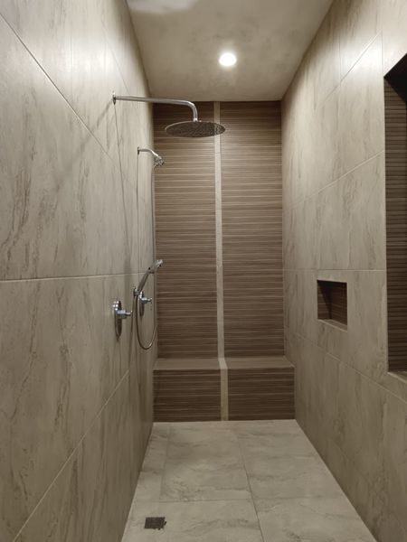 Con un exquisito juego de texturas, distribución y amplitud de espacios.