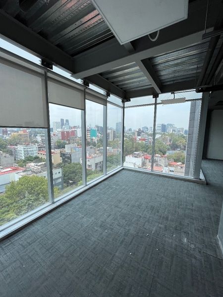 Se renta oficina en corporativo triple A totalmente moderno , la oficina es de 370 m2 cuenta con espacio totalmente abierto para que el cliente haga sus divisiones a su gusto baños para hombres y mujeres esos están al exterior de la oficina , se encuentra en piso 10 por lo que tiene una vista panorámica a toda la cdmx increíble , a tus órdenes tenemos diferentes medidas de oficinas.