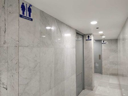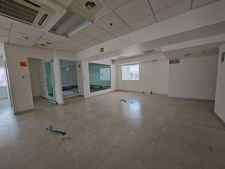 La oficina cuanta con 3 baños, una sala de juntas y área abierta de trabajos. Se puede adatpar a sus necesidades.