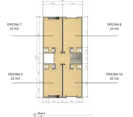 OFICINAS 1ERA PLANTA: $7,500.00 más IVA (22m2)