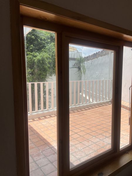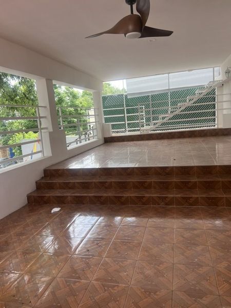 Terraza con vista al patio delantero y trasero, perfecta para zonas de esparcimiento o recreativas.