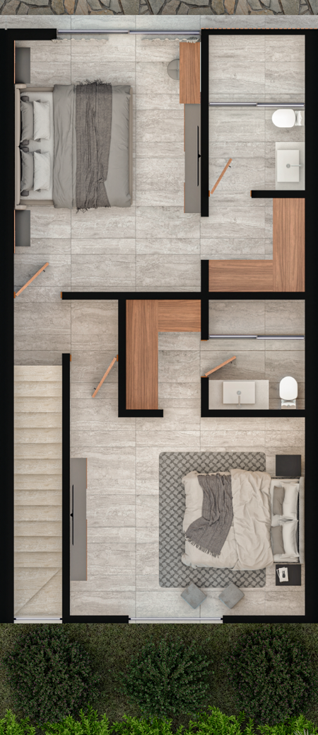 - Recámara con vista al jardín, baño completo y closet vestidor.