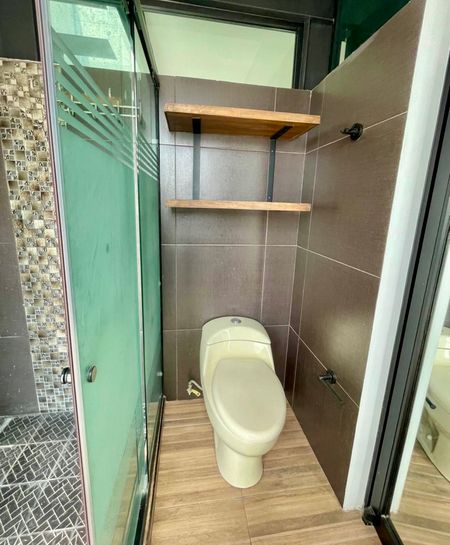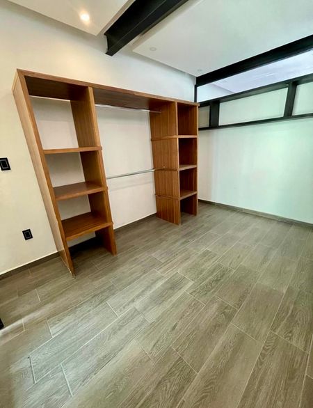 En planta alta tiene dos recámaras con baño cada una y una oficina. Una de las recámaras tiene minisplit.