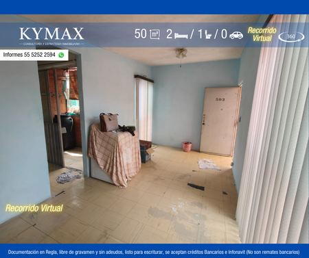 Este departamento en venta en Las Peñas, Iztapalapa, cuenta con 50 metros cuadrados de construcción y ofrece:
