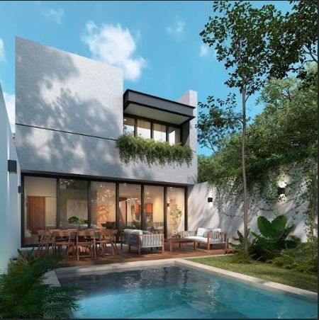 espacios abiertos y dobles alturas, con una gran terraza y área de alberca. Ubicado en la zona de Cholul a escasos minutos del periférico de Mérida.