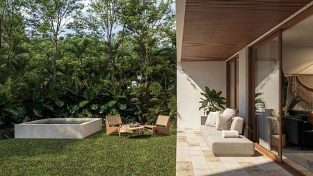 Las unidades de planta baja cuentan con un jardín privado que te permite convivir con la naturaleza. Además de una plunge pool, indispensable en un depa de clima tropical.