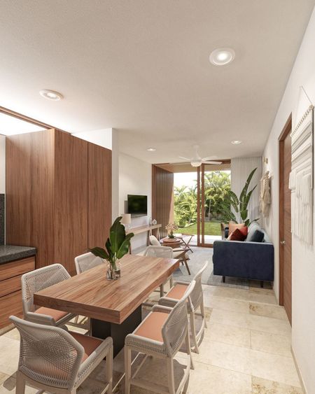 Oriana Tulum es un complejo de departamentos con un hermoso jardín central tipo hacienda, cuenta