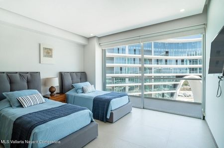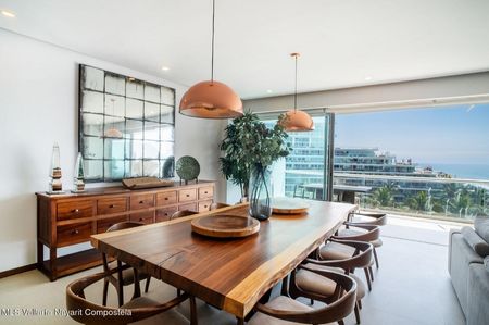 Espectacular departamento de 4 recámaras en Península Nuevo Vallarta, uno de los desarrollos frente al mar más exclusivos de la Riviera Nayarit. Con 304 m² de espacio, esta propiedad ha sido totalmente remodelada y amueblada con acabados de lujo, combinando elegancia, amplitud y una vista panorámica al océano Pacífico.