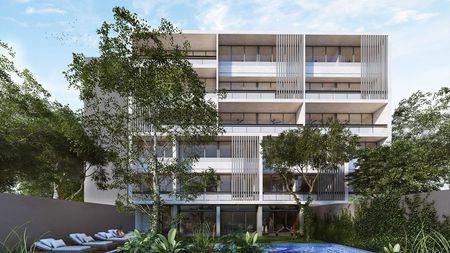 Penthouse en desarrollo con 75 departamentos, acomodados en dos torres gemelas que convergen en una zona de áreas comunes.