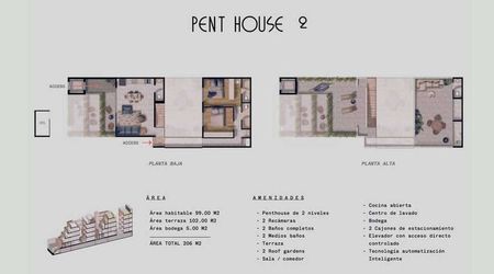 Superficie total: 206.00 m² (99 m² interiores + 102 m² de Roof Garden propio + 5 m² de bodega).