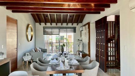 Contamos con 42 departamentos de 2 Recámaras y 2 Baños, para entrega inmediata, con un diseño Boho Mediterráneo, el cual combina maderas, paredes claras, piedra Maya y losas catalanas, equipados con :
