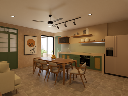 -Cocina con meseta, gavetas y area de comedor