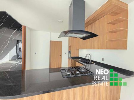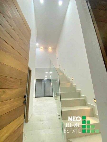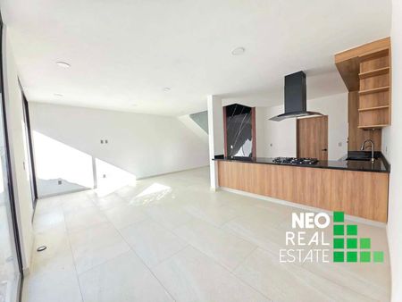 Cocina abierta, sala con doble altura, comedor, baño completo , cuarto de lavado , 2 lugares de estacionamiento