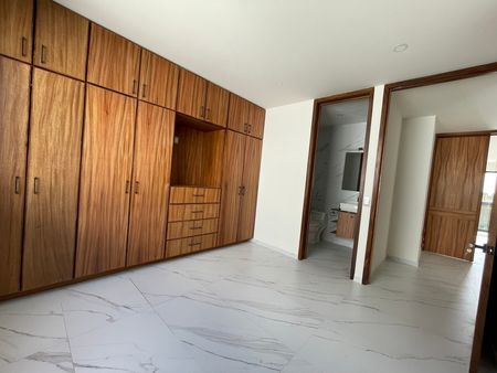 Piso porcelánico gris tipo cemento, enjarres de yeso y pintura Comex a tres manos, puertas de parota y clósets de madera tecnificada.