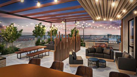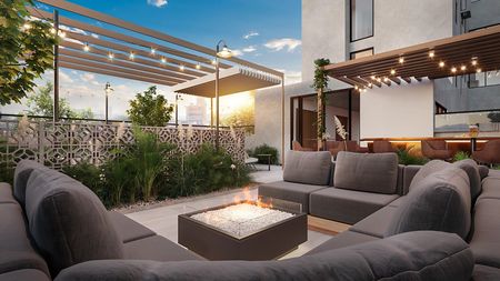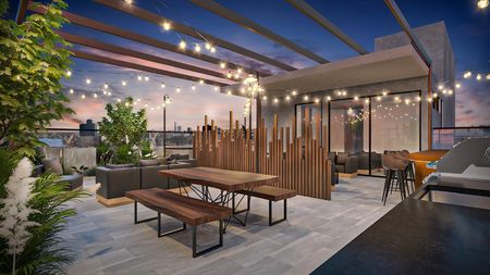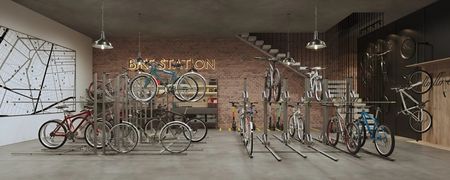Amenidades de terraza abierta con grill oara comunidad, area de bicicletas, area de herramientas y más.
