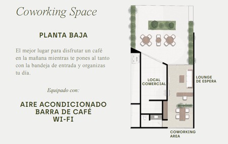 Coworking con barra de café, lounge con Smart TV, sala de juegos, frigobar