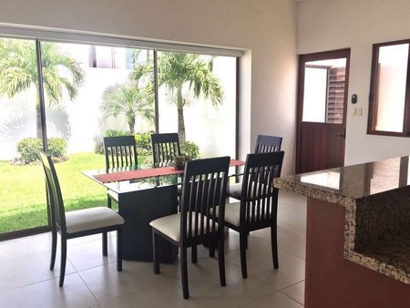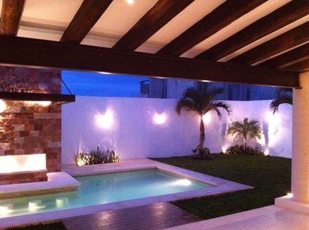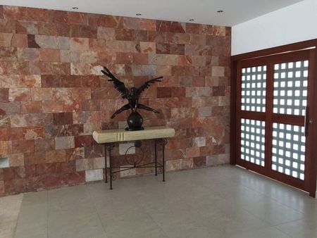 Amplia sala comedor, recibidor y area de bar, estudio con baño completo, cocina integral con antecomedor, terraza techada con abanicos, alberca y jardin con medio baño, cuarto de servicio con baño, 4 estacionamientos